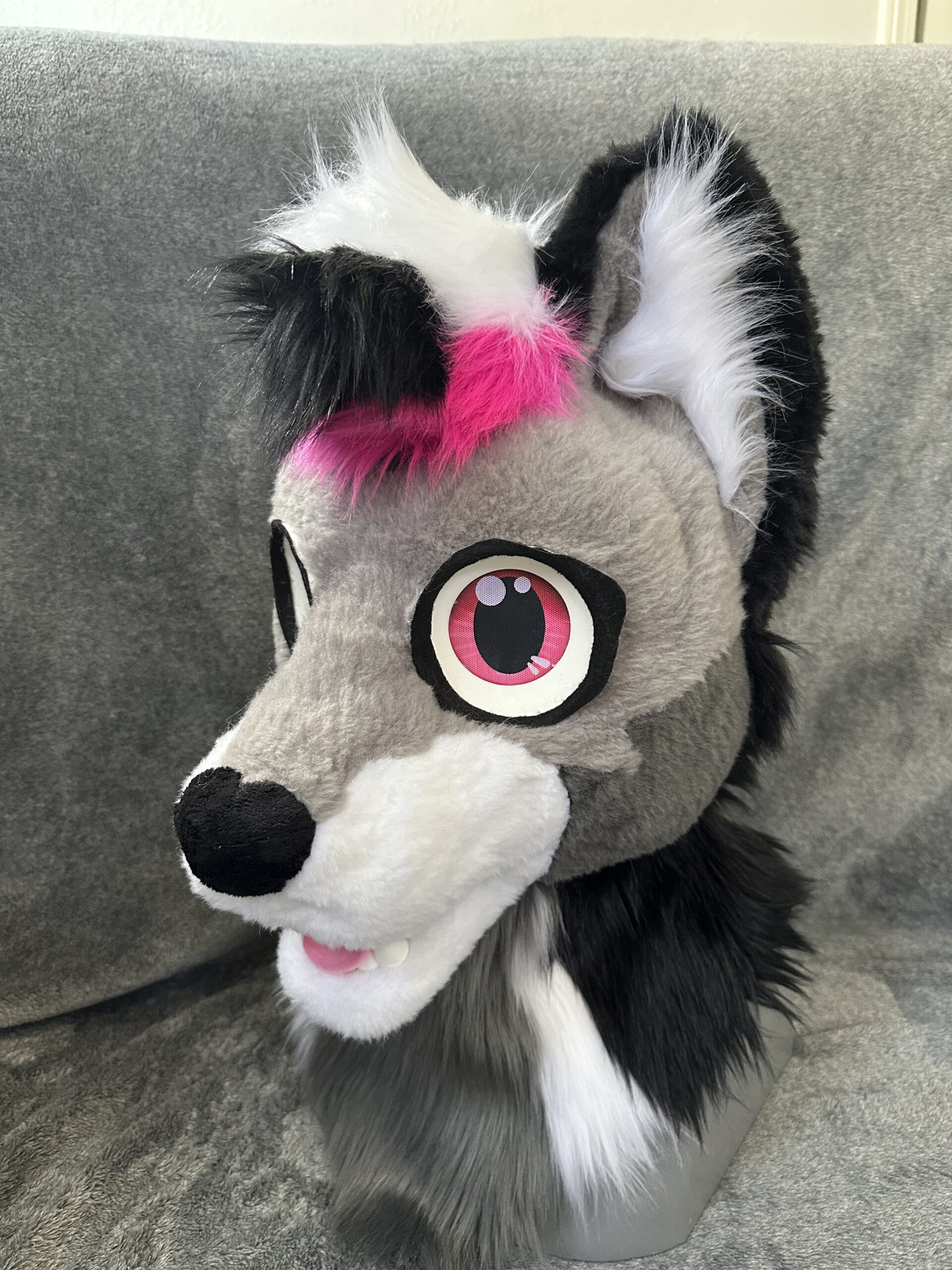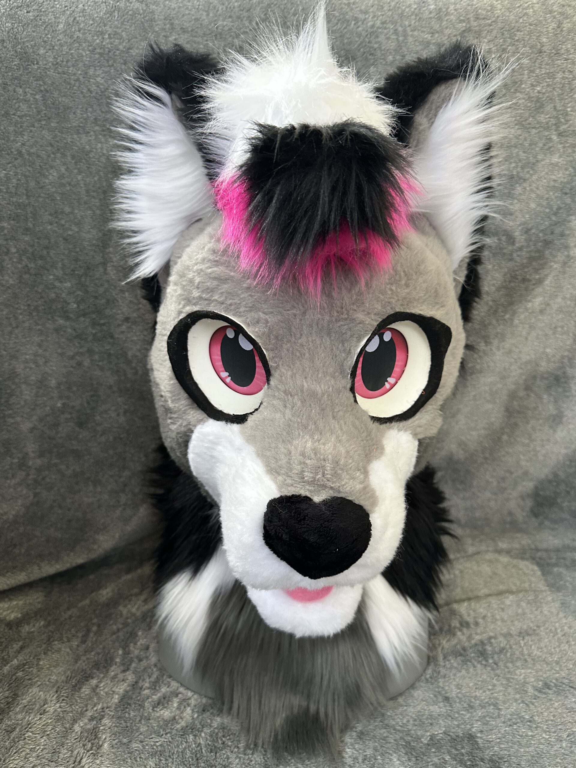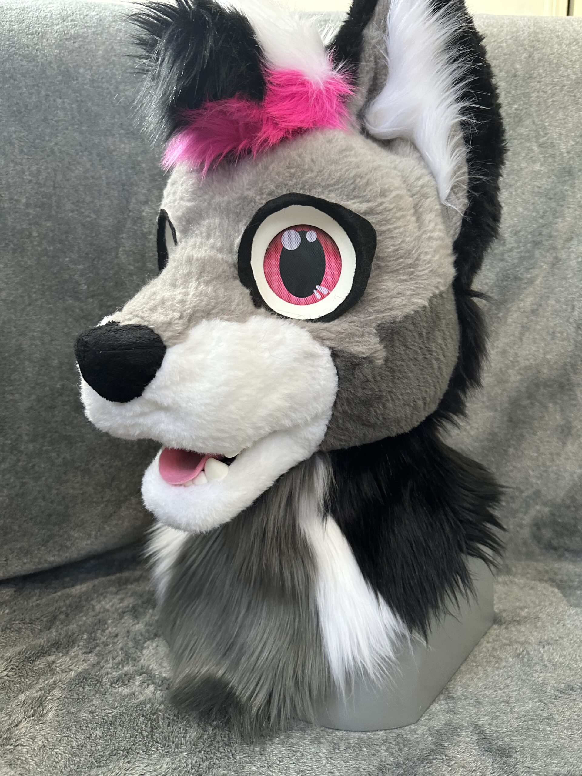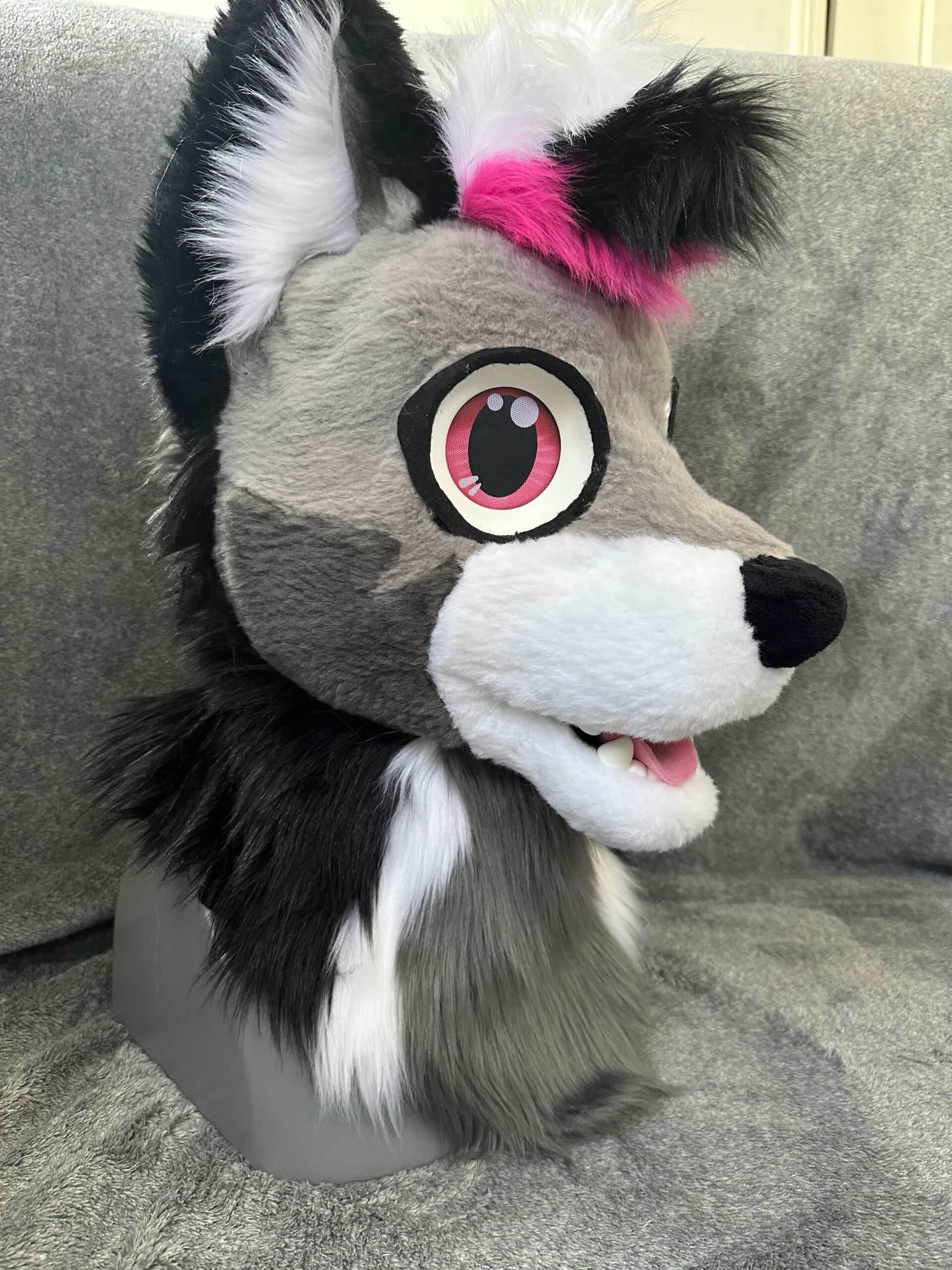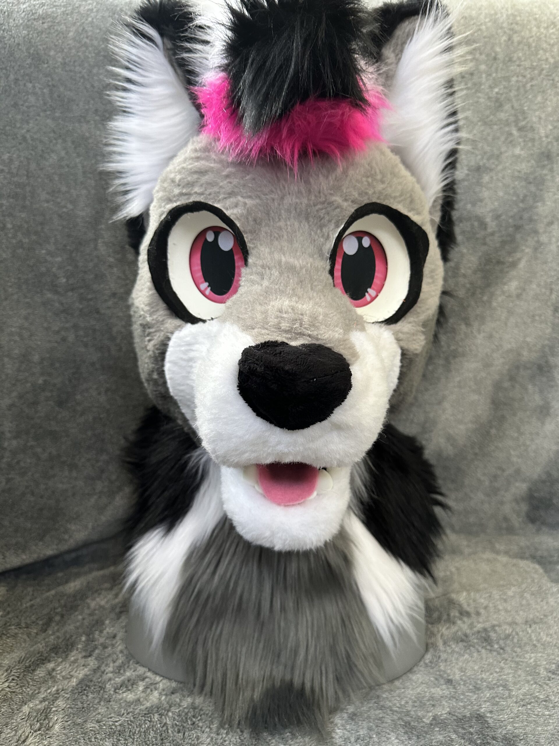 Arlo Year: 2025Species: Husky Features Mini Partial Canine Faux Fur Minky Fixed Tongue Sublimated Eyes 4 Finger Paws Foam Base 3D Printed Teeth 3D Printed Eyes Fully Lined Head Location Gallery