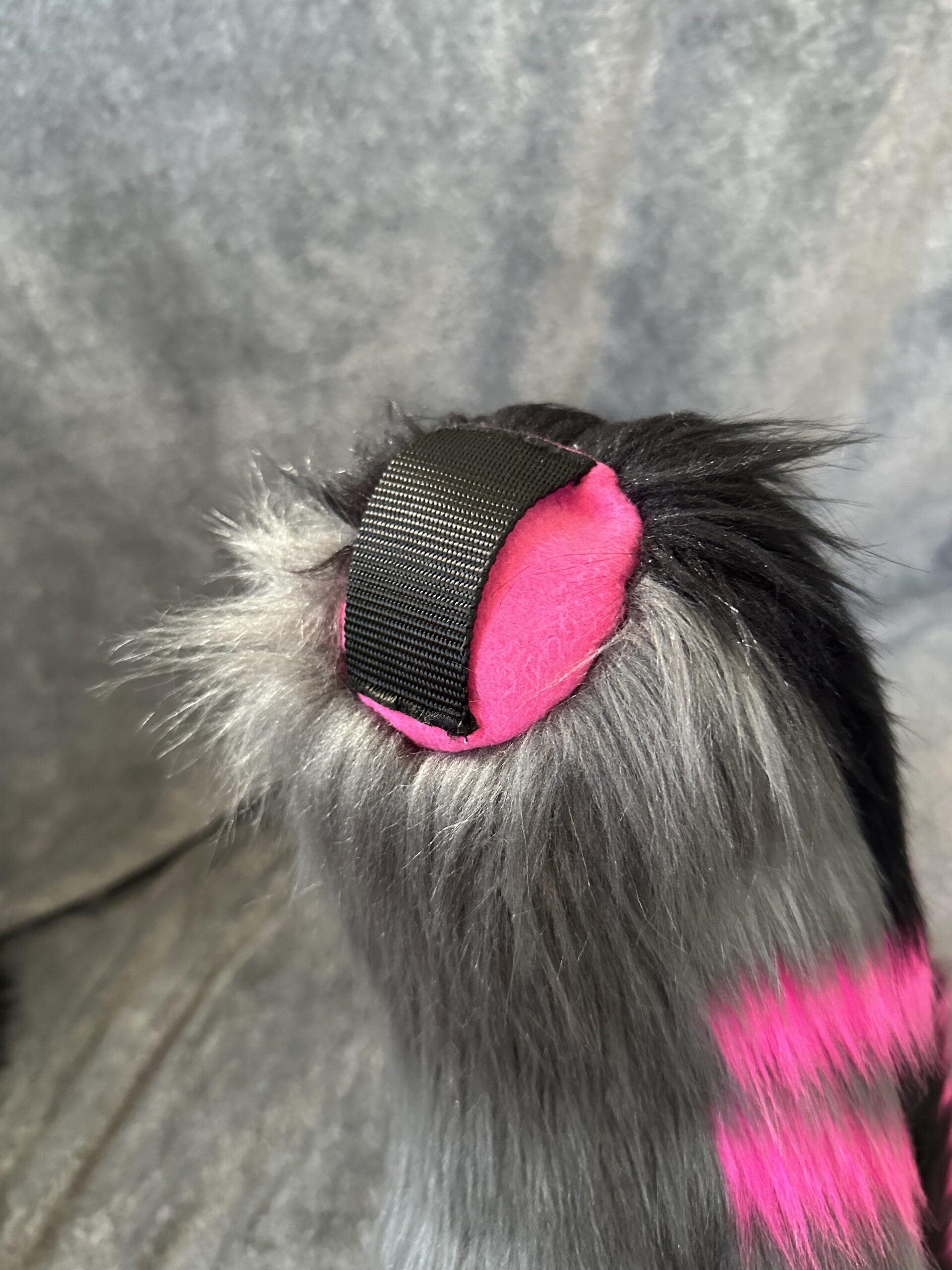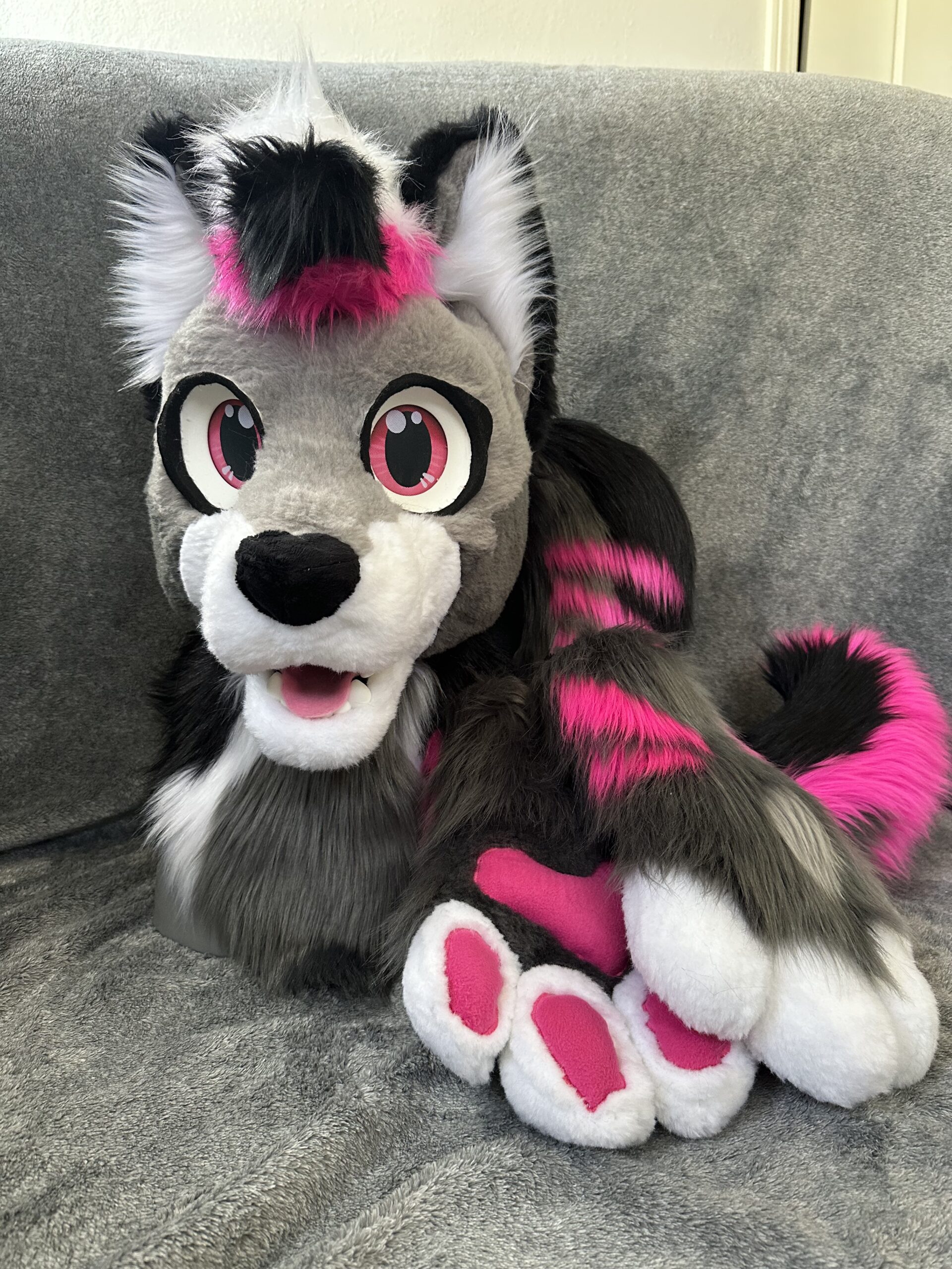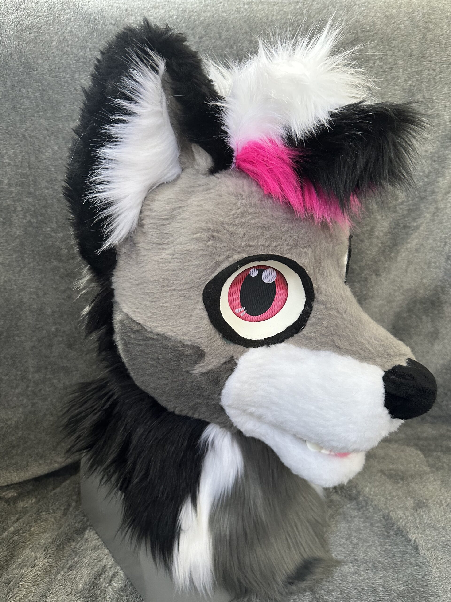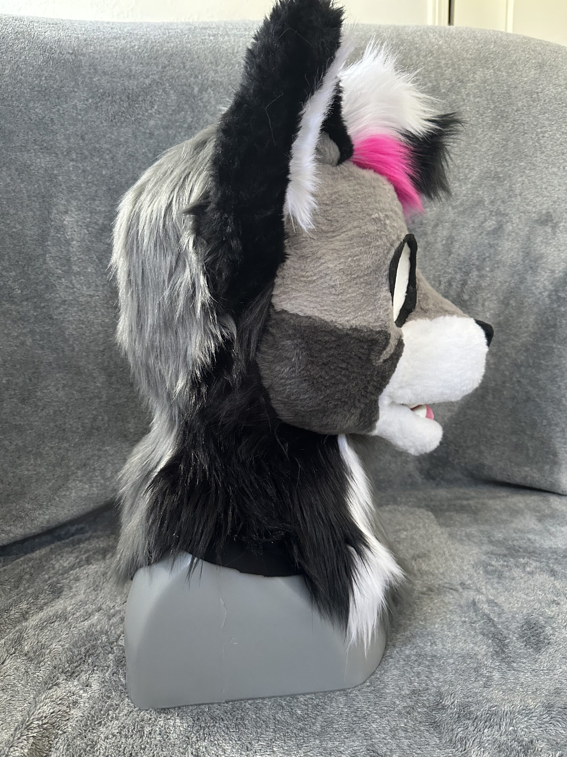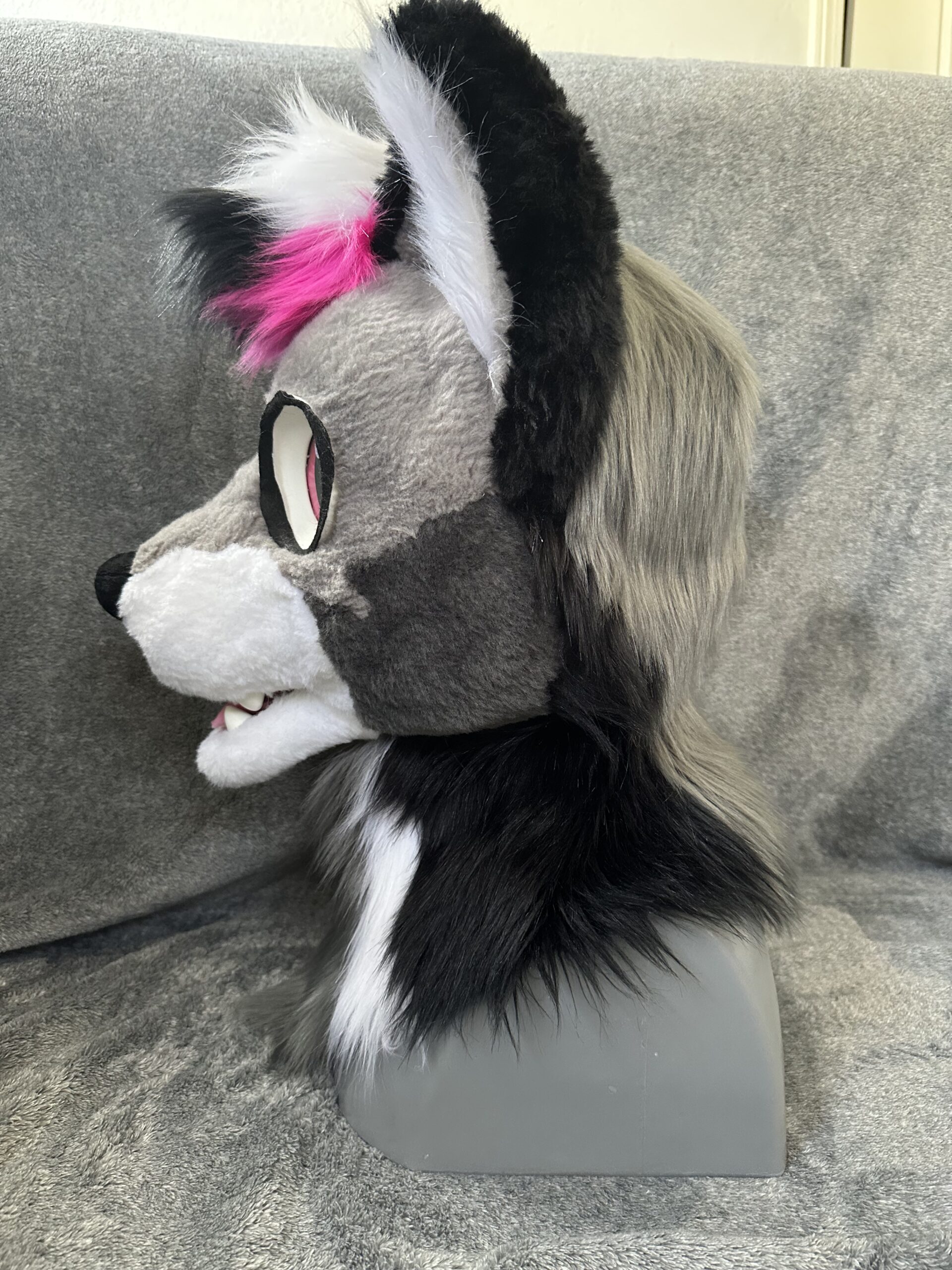 Arlo Year: 2025Species: Husky Features Mini Partial Canine Faux Fur Minky Fixed Tongue Sublimated Eyes 4 Finger Paws Foam Base 3D Printed Teeth 3D Printed Eyes Fully Lined Head Location Gallery