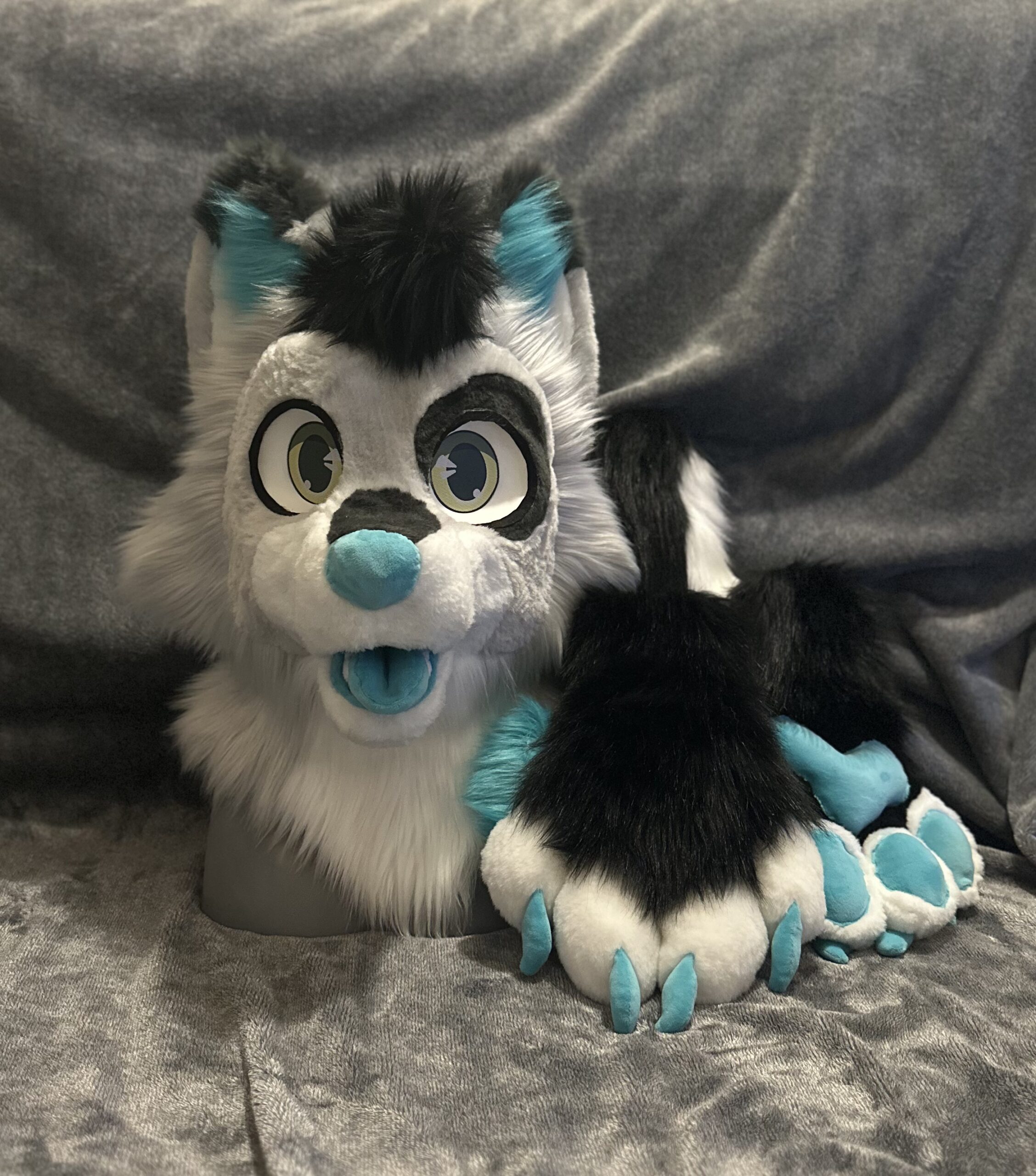 Domino Year: 2025Species: Dog Features Mini Partial Canine Faux Fur Minky Magnetic Tongue Sublimated Eyes 4 Finger Paws Foam Base 3D Printed Eyes Fully Lined Head Soft Claws Lower Teeth Location Gallery
